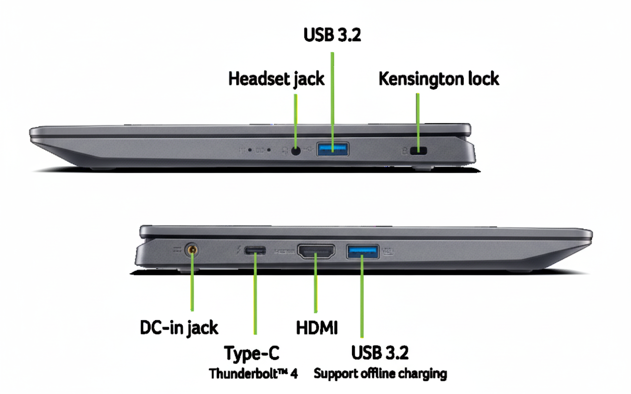 Maradj zökkenőmentesen kapcsolatban a számos csatlakozási lehetőség révén, beleértve a két USB 4 Type-C portot, a HDMI 2.1-et, a Wi-Fi 6E-t és a Bluetooth 5.3-at. A karcsú, könnyű alumínium kialakítás pedig a mobilitásra és a sokoldalúságra lett tervezve.