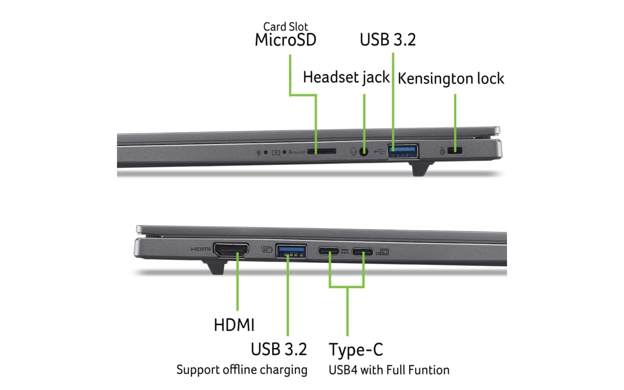 Egész napos teljesítmény megszakítások nélkül. Az Aspire 16 AI akár 40%-kal nagyobb energiahatékonyságot biztosít, ami többnapos akkumulátor-üzemidőt eredményez. Akár videókat streamelsz, az internetet böngészed vagy munkahelyi projektekkel foglalkozol, anélkül élvezheted az alkotás és a kapcsolatteremtés szabadságát, hogy folyamatosan konnektort kellene keresned.