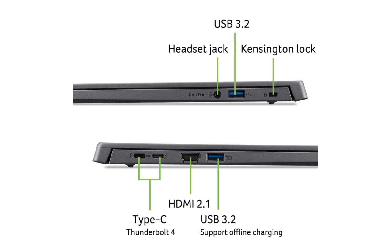 Egész napos teljesítmény megszakítások nélkül. Az Aspire 16 AI akár 40%-kal nagyobb energiahatékonyságot biztosít, ami többnapos akkumulátor-üzemidőt eredményez. Akár videókat streamelsz, az internetet böngészed vagy munkahelyi projektekkel foglalkozol, anélkül élvezheted az alkotás és a kapcsolatteremtés szabadságát, hogy folyamatosan konnektort kellene keresned.