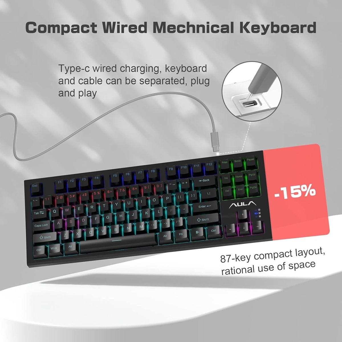 Az AULA F3032 egy mechanikus RED switchekkel szerelt TKL (tenkeyless) gamer billentyűzet, amely kompromisszummentes teljesítményt kínál kompakt méretben. A gyors és halk lineáris kapcsolók kiváló választást nyújtanak versenyszerű játékhoz vagy akár hosszabb gépelési feladatokhoz is.