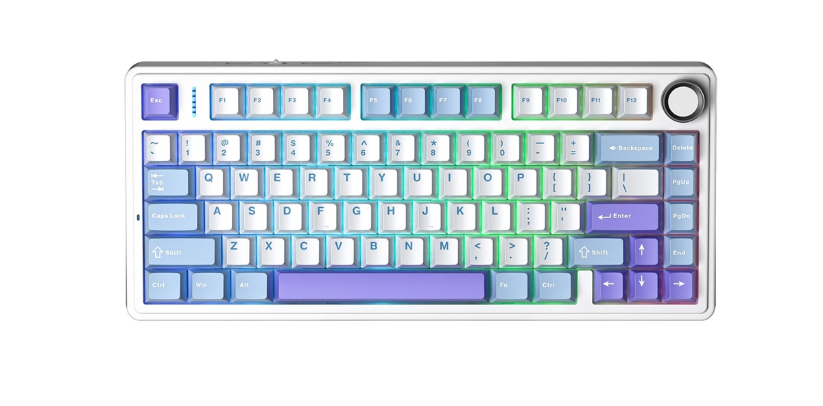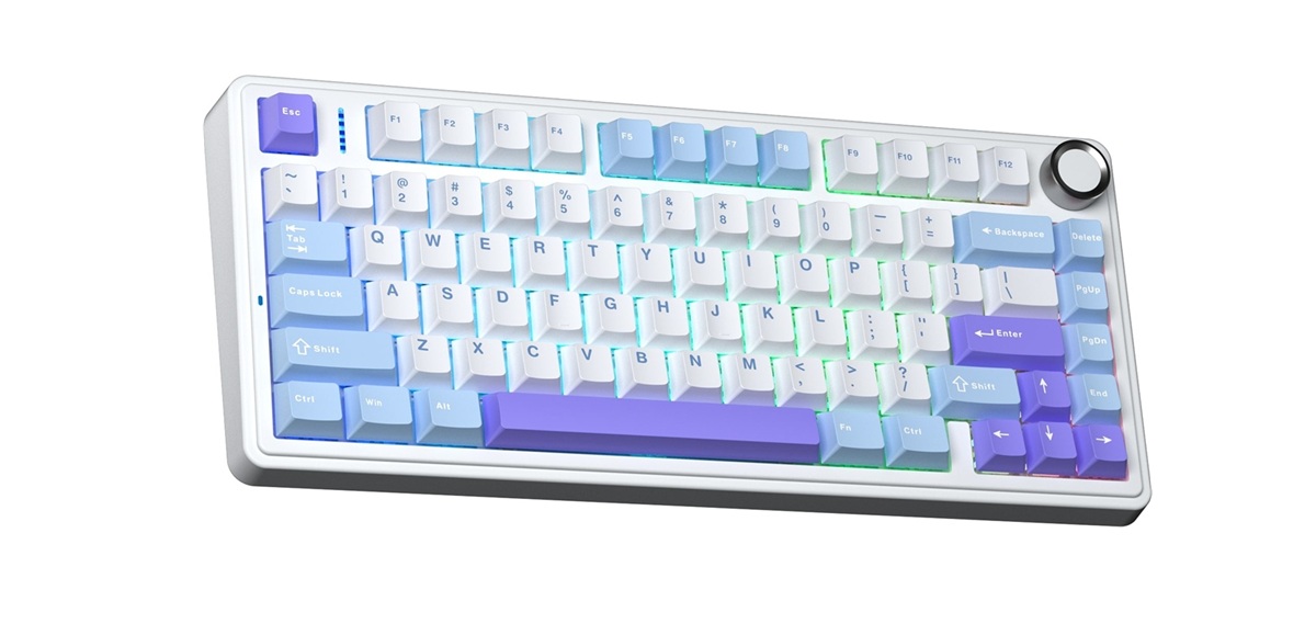 AULA F75 Vezeték Nélküli Mechanikus Gamer Billentyűzet - Fehér-Kék-Lila