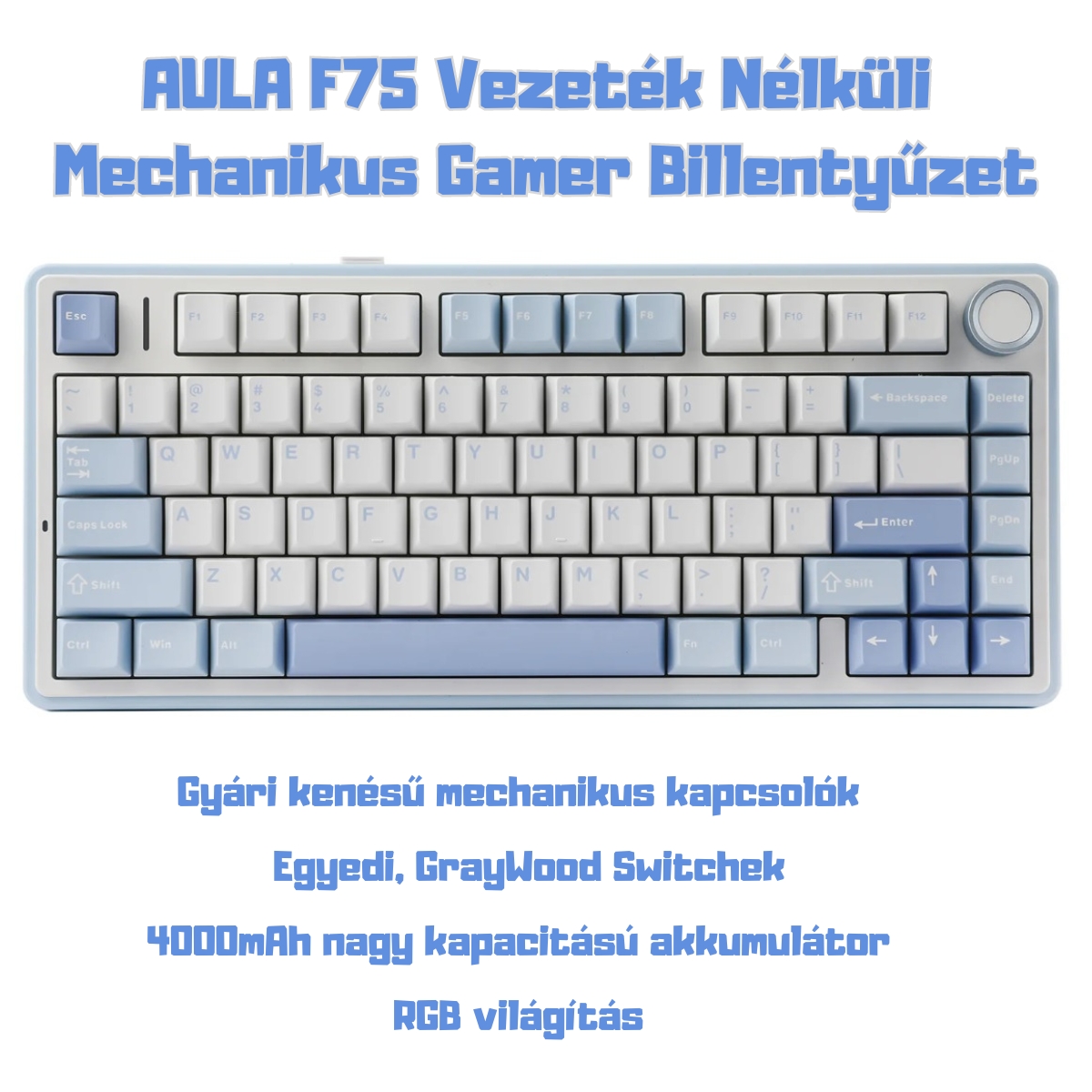 AULA F75 Vezeték Nélküli Mechanikus Gamer Billentyűzet - Kék