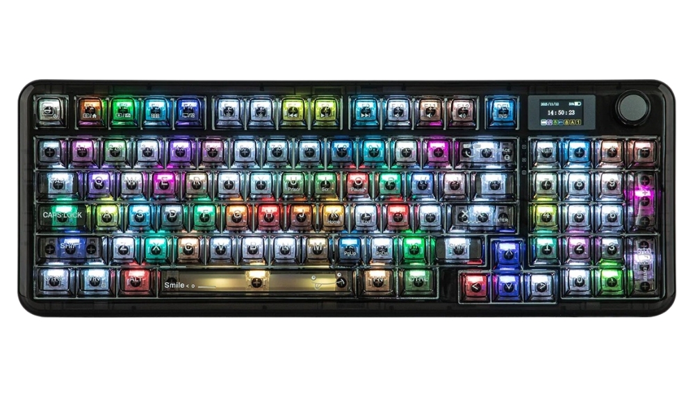 A kompakt 96%-os layout megőrzi a numerikus részt, miközben helytakarékos kialakítást biztosít. A beépített intelligens kijelző valós időben mutatja az akkumulátor töltöttségét, a csatlakozási módot és az állapotinformációkat – minden fontos adat egy pillantásra.
