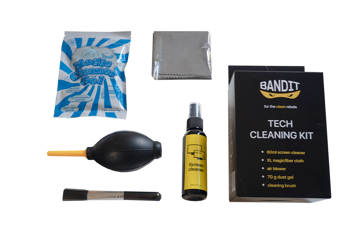 Tisztítás: BANDIT 5 darabos tisztítókészlet - Praktikus eszközök a perifériák és kijelzők alapos tisztításához.