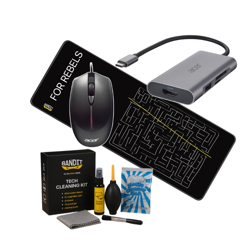Tisztítás: BANDIT 5 darabos tisztítókészlet - Praktikus eszközök a perifériák és kijelzők alapos tisztításához.