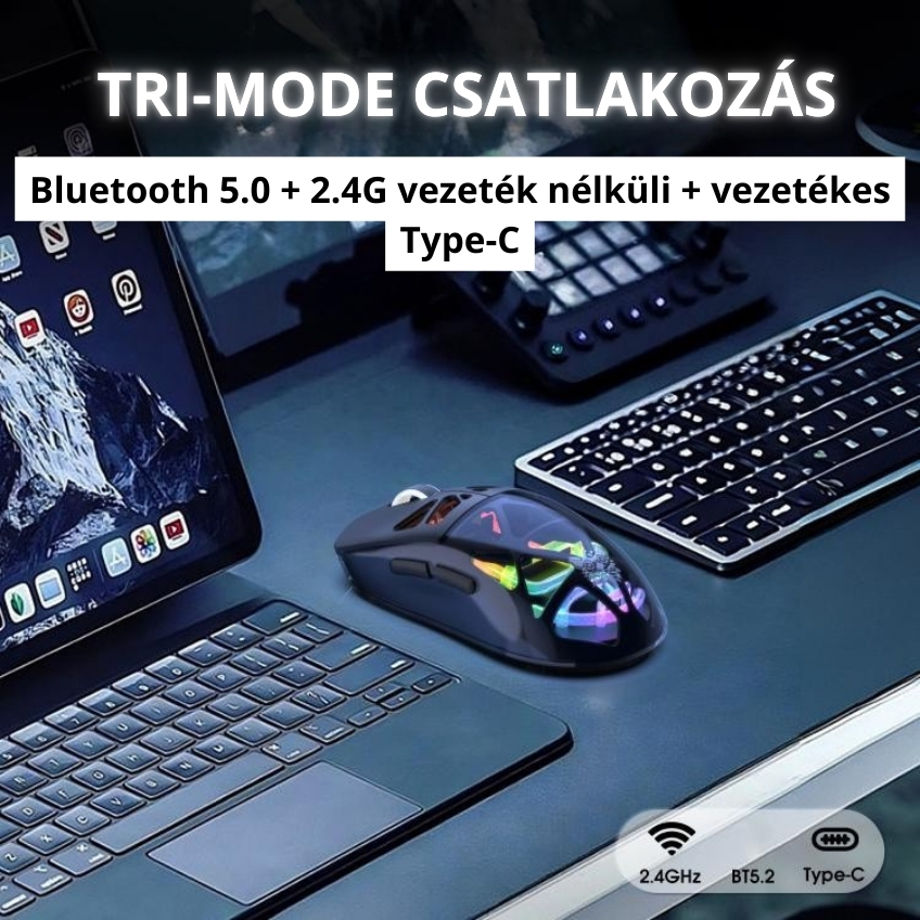 Vezeték nélküli 2,4Ghz, Bluetooth, Vezetékes USB-C