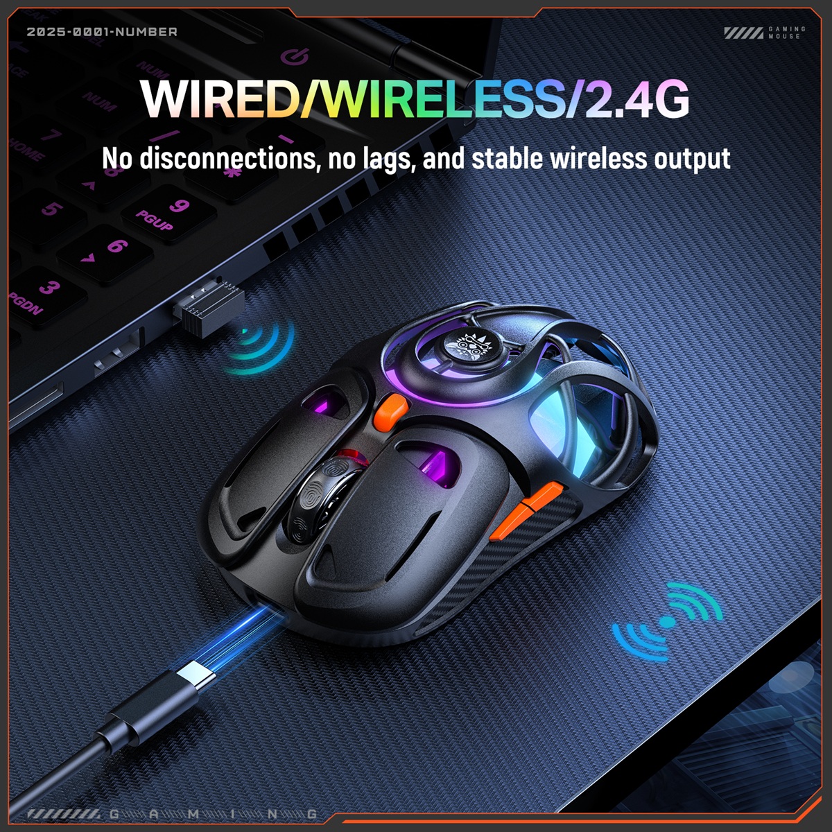 Onikuma DM02 Tri-Mode Vezeték Nélküli Gamer Egér - Fekete