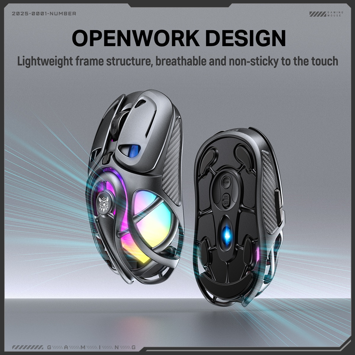 Az innovatív, nyitott (openwork) méhsejt szerkezet nemcsak modern megjelenést kölcsönöz az egérnek, hanem jelentősen javítja a szellőzést is. Ez segít megelőzni az izzadást, így az egér hosszú, intenzív játékmenetek során is hűvös és stabil fogást biztosít.