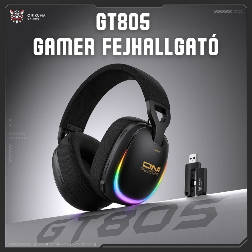 Az Onikuma GT805 egy valódi all-in-one gamer headset, amely kompromisszumok nélkül ötvözi a vezeték nélküli szabadságot, az alacsony késleltetést és a látványos RGB dizájnt. Legyen szó kompetitív játékról, konzolozásról vagy mobilos használatról, ez a headset minden helyzetben megállja a helyét.
