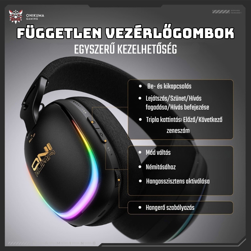 Az Onikuma GT805 tökéletes választás, ha egy modern, sokoldalú, hosszú üzemidejű gamer headsetet keresel, amely teljesítményben és megjelenésben is kiemelkedik.