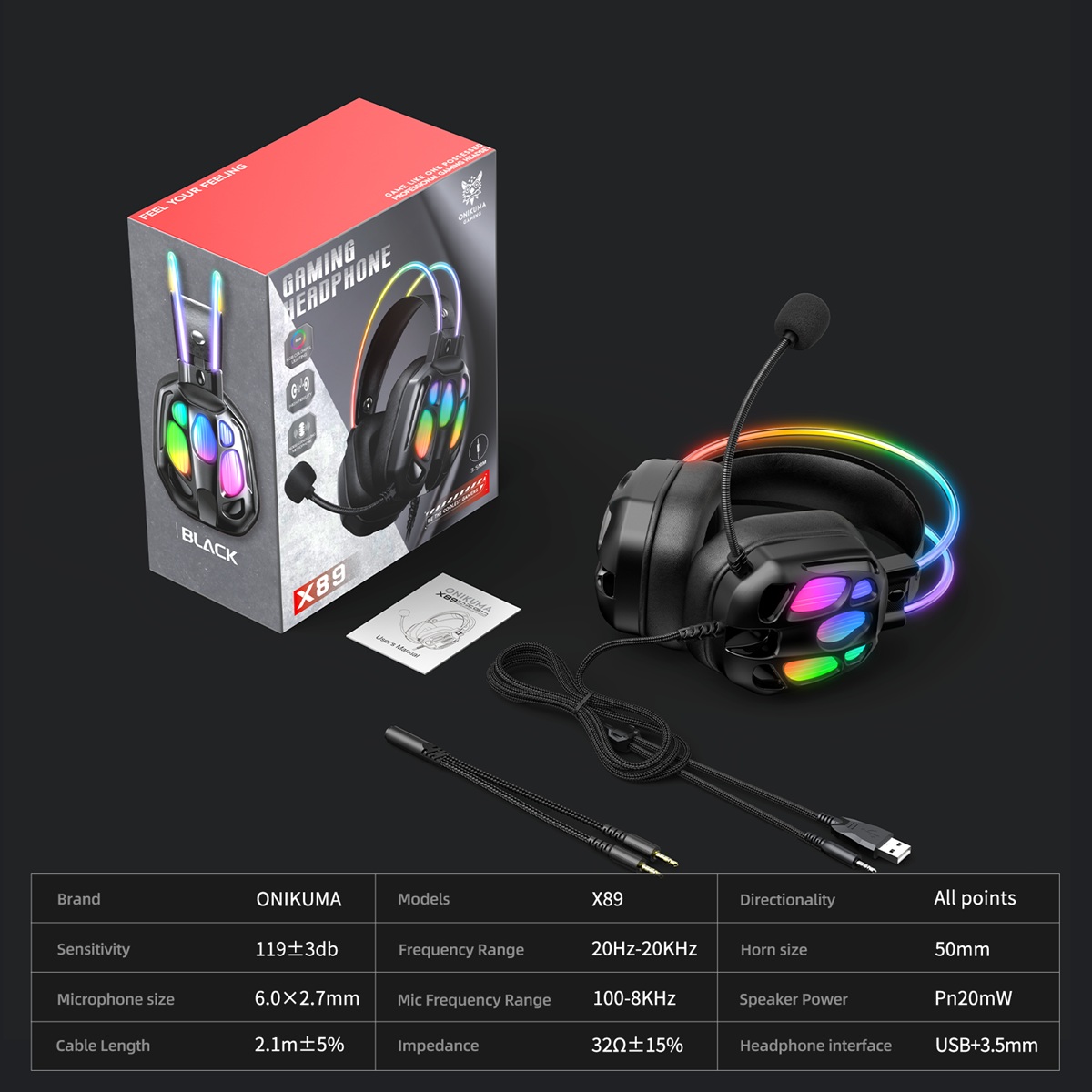 Az Onikuma X89 ideális választás azoknak a gamereknek, akik nemcsak kiváló hangzást és kényelmet, hanem látványos, modern megjelenést is keresnek.