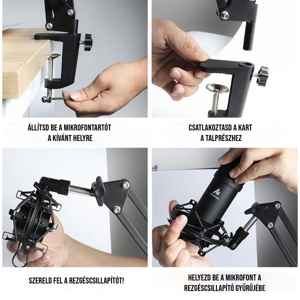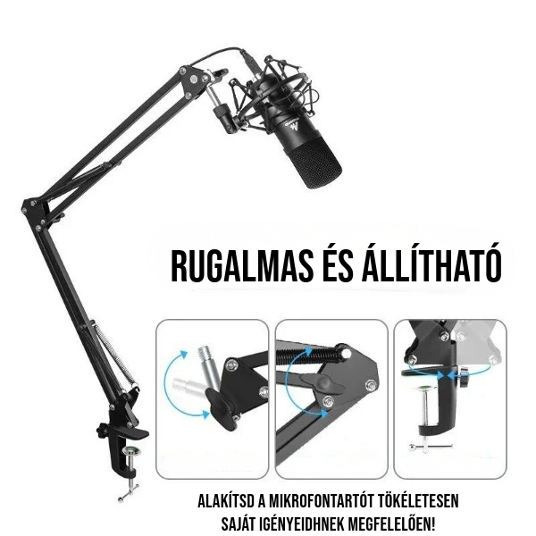 A kar több ponton is hajlítható, így könnyedén beállítható a tökéletes szög és magasság a mikrofonhoz. Akár ülve, akár állva használnád, mindig a számodra legkényelmesebb pozícióba állíthatod.
