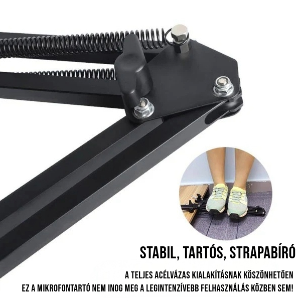 A beépített rugórendszernek köszönhetően a mikrofon mozgatása zökkenőmentes és hangtalan – ideális felvételi környezethez.