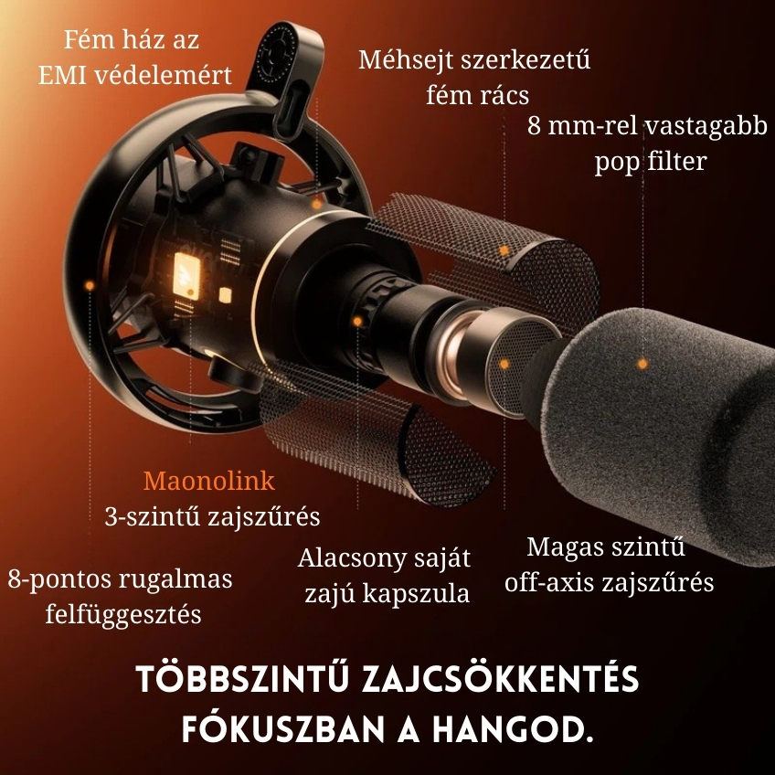 A MAONO PD200W Hybrid vezeték nélküli podcast mikrofon professzionális megoldást kínál mindazoknak, akik stúdióminőségű hangzást szeretnének rugalmas, modern használattal ötvözni. A kardioid kialakítású kondenzátor mikrofon pontosan a beszédhangra fókuszál, miközben hatékonyan csökkenti a környezeti zajokat, így tiszta és természetes megszólalást biztosít podcasteléshez, streameléshez, interjúkhoz és tartalomgyártáshoz.