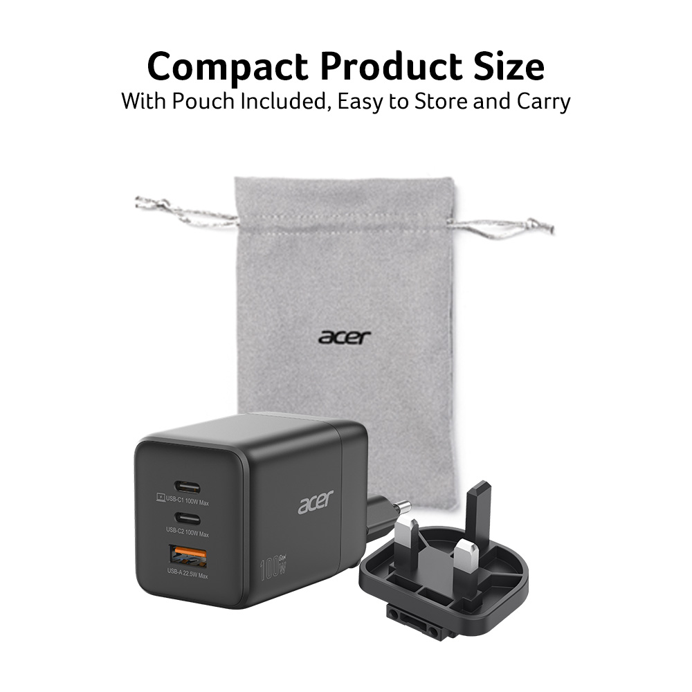 Acer GaN Charger 100W 2x USB-C + 1x USB-A hálózati adapter